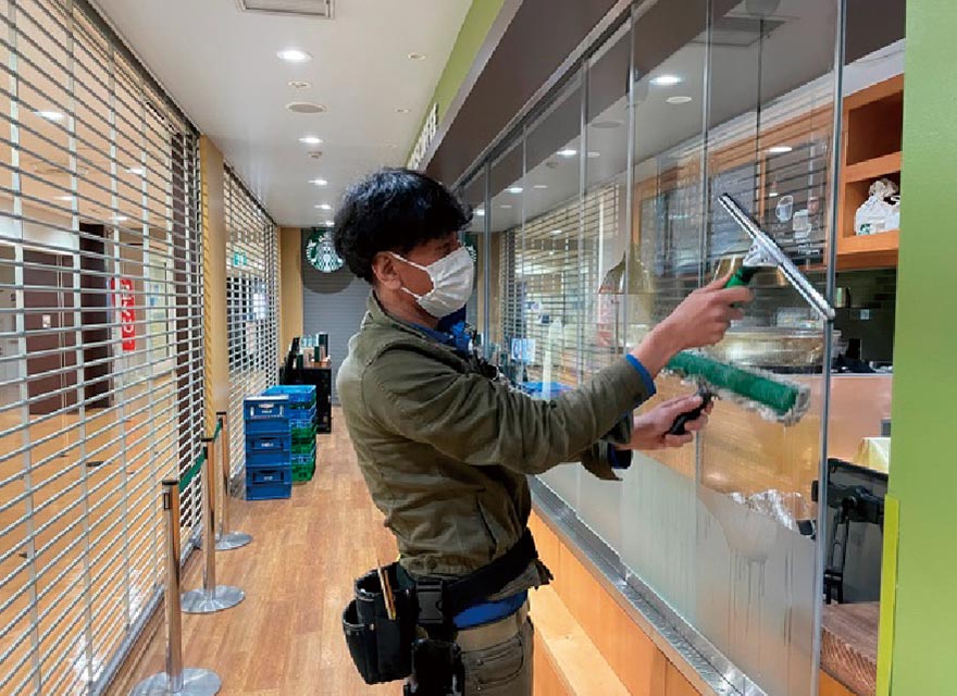 キレイに仕上げることが難しい窓ガラスも、プロの技術でムラ無くピカピカに磨き上げます。
